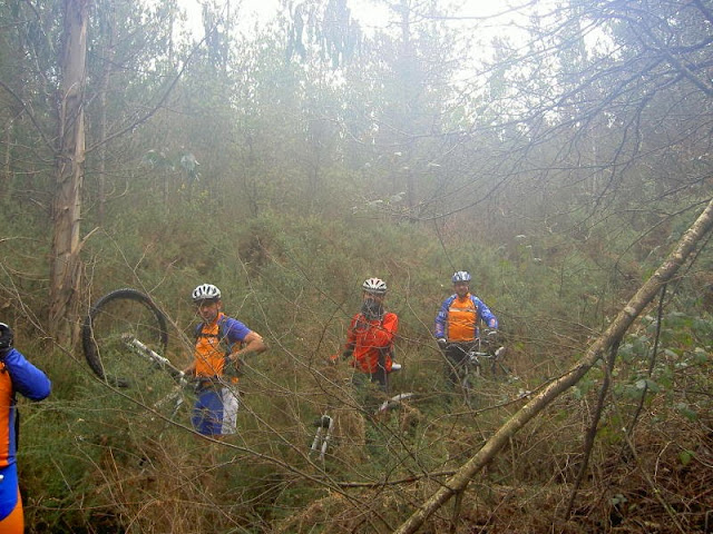 -coge por el Camino-, -ahora tira para a dereita-, -Santisoooo: "a la otra derecha"-, -momento Paipai: ¡era pa ahí pa aaahí!; non pa ahí-, -deberíamos habernos metido por a pista-, etc, etc. Todo ello tomado como estos bien avenidos saben tomarse los asuntos que riquieren de tanto rigor: con la mejor de las sonrisas, risas hasta llegar a momentos de inevitable incontinencia.